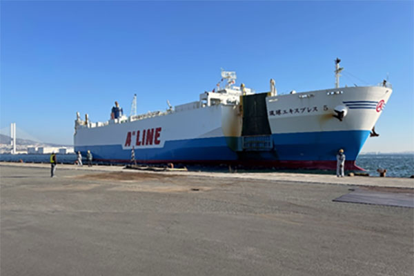 南港沖縄事務所は、大阪市住之江区にある阪神沖縄航路専用ふ頭内の南港A-5上屋内に位置し、マルエーフェリー(株)が運航する阪神沖縄航路のRO/RO船(琉球エキスプレス2)の荷役作業を隔週の土曜日に行っています。